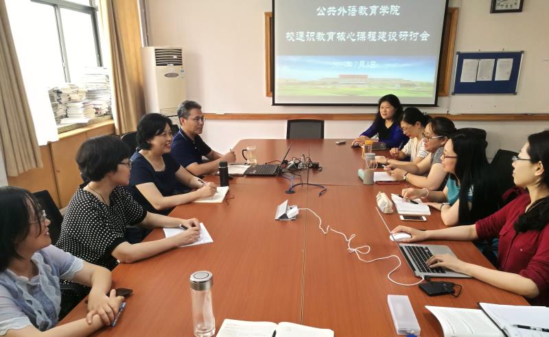 在经验交流环节,《中华文明英语谈》课程负责人刘菊花老师分享课程建设经验,从课程的内容设计、课堂教学、学生反馈评估方式、团队建设等方面做了介绍。《英文写作与沟通》课程团队成员老师也谈了前期课堂教学的经验和体会。在随后的研讨环节,与会老师就课程建设形势与挑战、措施与任务等进行了深入研讨。