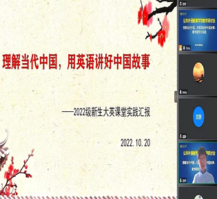 开展了“理解当代中国、用英语讲好中国故事:教学研究与实践”的线上教学研讨,多位老师先后发言,结合二十大报告学习体会,就教学研讨主题进行了精彩分享。