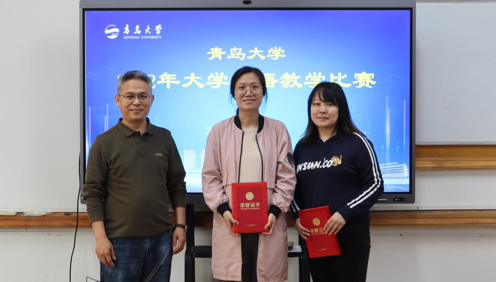 2022年大学英语教学比赛在睿思楼204室举行。胡淼老师在比赛中脱颖而出,荣获本次比赛特等奖;夏菲菲老师、孟春老师荣获一等奖。