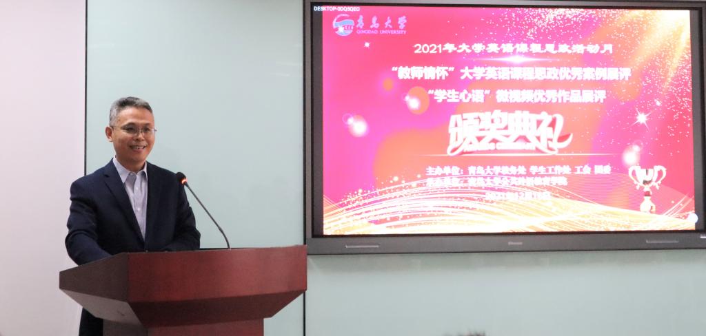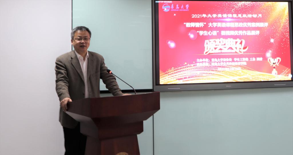 12月16日,学校在会议中心402会议室举行2021年大学英语课程思政活动月“教师情怀”大学英语课程思政优秀案例展评和“学生心语”微视频优秀作品展评暨颁奖典礼,校党委常委、副校长肖江南出席并讲话。