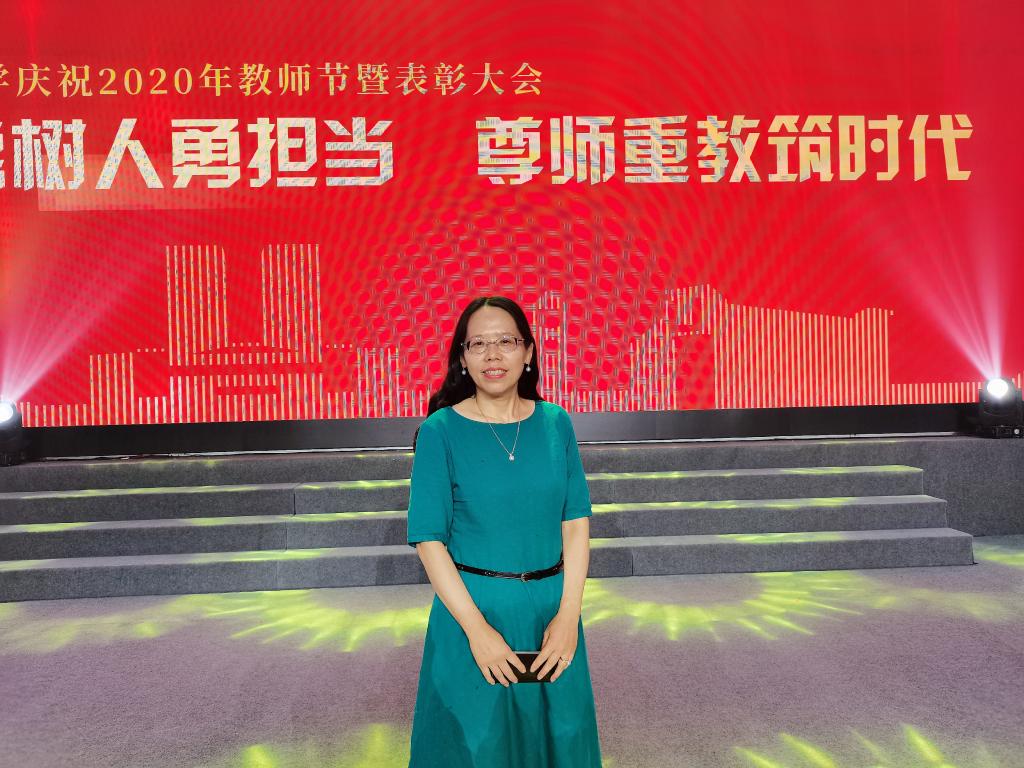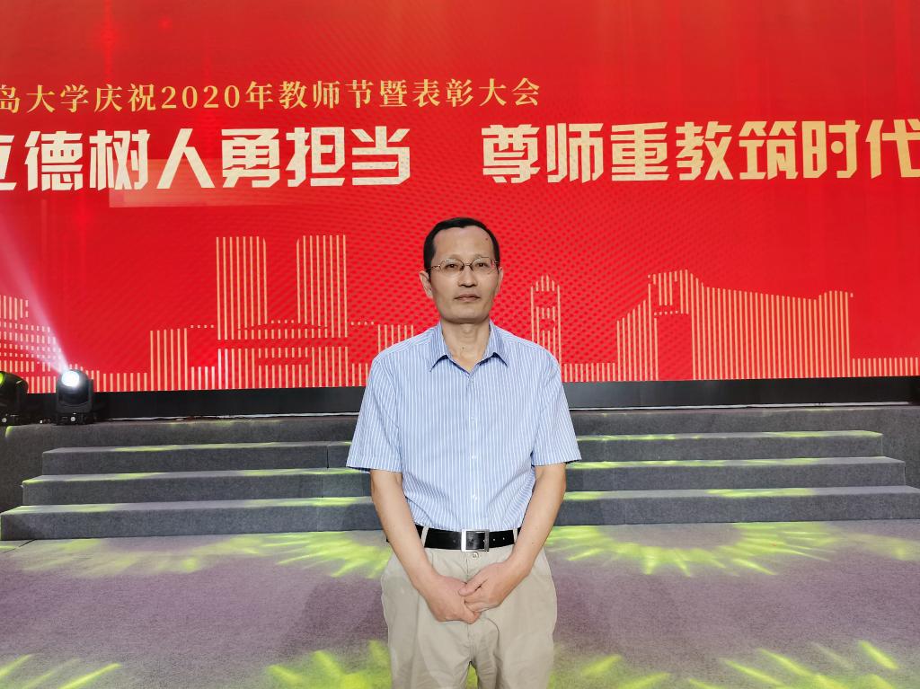 庆祝2020年教师节暨表彰大会在青大剧院隆重举行。在疫情防控常态化形势下,今年的大会采取线上和线下结合的方式举办。校领导、全体受表彰人员和有关单位代表参加现场会议;学院领导和全院教师通过钉钉系统线上收看。