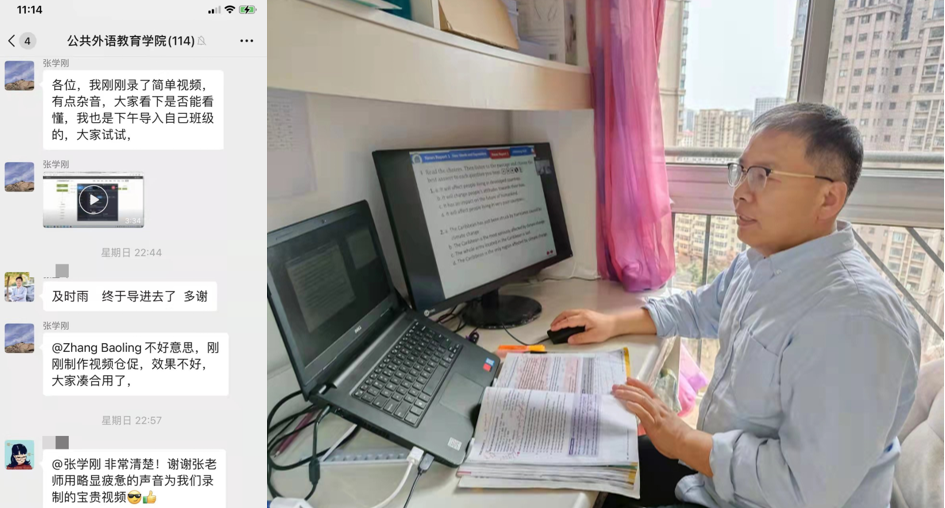 教工第三党支部张学刚老师担任教研室主任和大学英语视听说IV课程负责人,为了帮助老师们更好地掌握在线授课平台使用技巧,连夜录制了操作视频,帮助老师们在教学平台上创建班级、导入学生名单,保证了网上授课顺利进行。