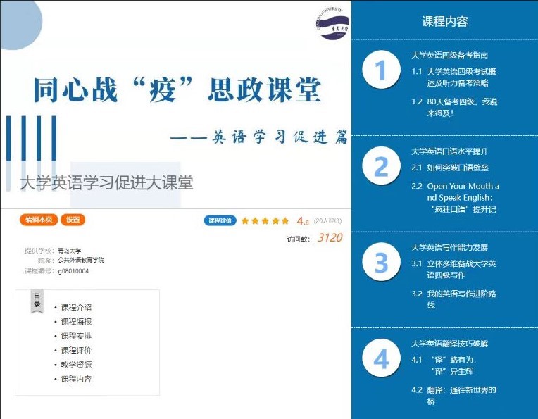“同心战‘疫’思政课堂”英语学习促进篇暨大学英语活动月正式开启,全校近3000名学生参与首场讲座活动,讲座访问量9000余次,取得圆满成功。