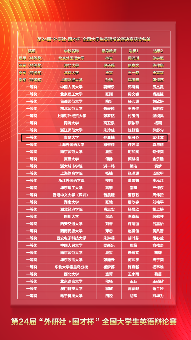 多年来对此项赛事精心培育,深耕厚植。2020年学院主办的英语演讲、英语辩论、英语阅读、英语写作四大赛事获得创新创业学院的支持,对竞赛团队开展培训和比赛提供极大帮助;2022年学院以英语辩论赛申请研究生院“一院一赛”项目获批,从辩手遴选到赛事开展都为英语辩论赛创造了有利条件。可以说,此次取得优异的成绩离不开学校创新人才培养的目标指导,离不开欧乐影视