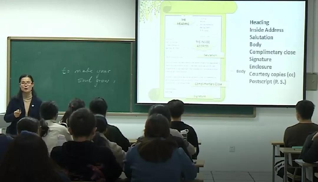 “师生共同体”不止于课堂上的“合作”,更在于师生之间情感的紧密联系。在《英文写作与沟通》这门晚修课上,孙亚楠能叫出来自不同专业的部分学生的名字,甚至记得学生参加的大创项目。课间时间,她会主动和学生聊天,听他们讲自己最近的学习和生活。2020级广播电视专业研究生李豫鲁说,他曾在孙亚楠的鼓励下参加了2021年 “第四届中国大学生5分钟科研英语演讲”大赛,受益匪浅。