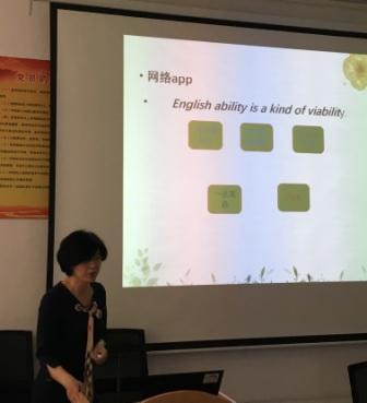冷晓凤老师做了“以激励引导为驱动的英语教学”的讲座,分享了激励、引导英语基础薄弱学生的经验做法:通过向学生输入英语能力在当今世界就是生存能力的观点,激励学生的学习积极性;指导学生充分利用网络和APP英语资源,每天学习英语,完成线上作业,不断输入、积累,以求更多更有效的输出;引导学生将英语学习与自己专业学习相结合,用英语学习助力专业学习。