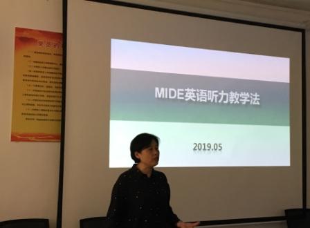 王海峻老师分享了自己独创的“MIDE英语听力教学法”:M—Motivation,从意识、方法、情感等多方面动员、激励学生加强听的训练;I—Immersion,在课堂中除翻译时需要使用汉语外,全程使用英语,使学生习惯于“浸入式”的英语学习;D—Demonstration,强调教师在教学过程中的示范和引领作用,通过教师的良好示范,对学生起到积极的正向引导作用;E—Evaluation,检查督促学生完成学习任务,评估学生学习效果。