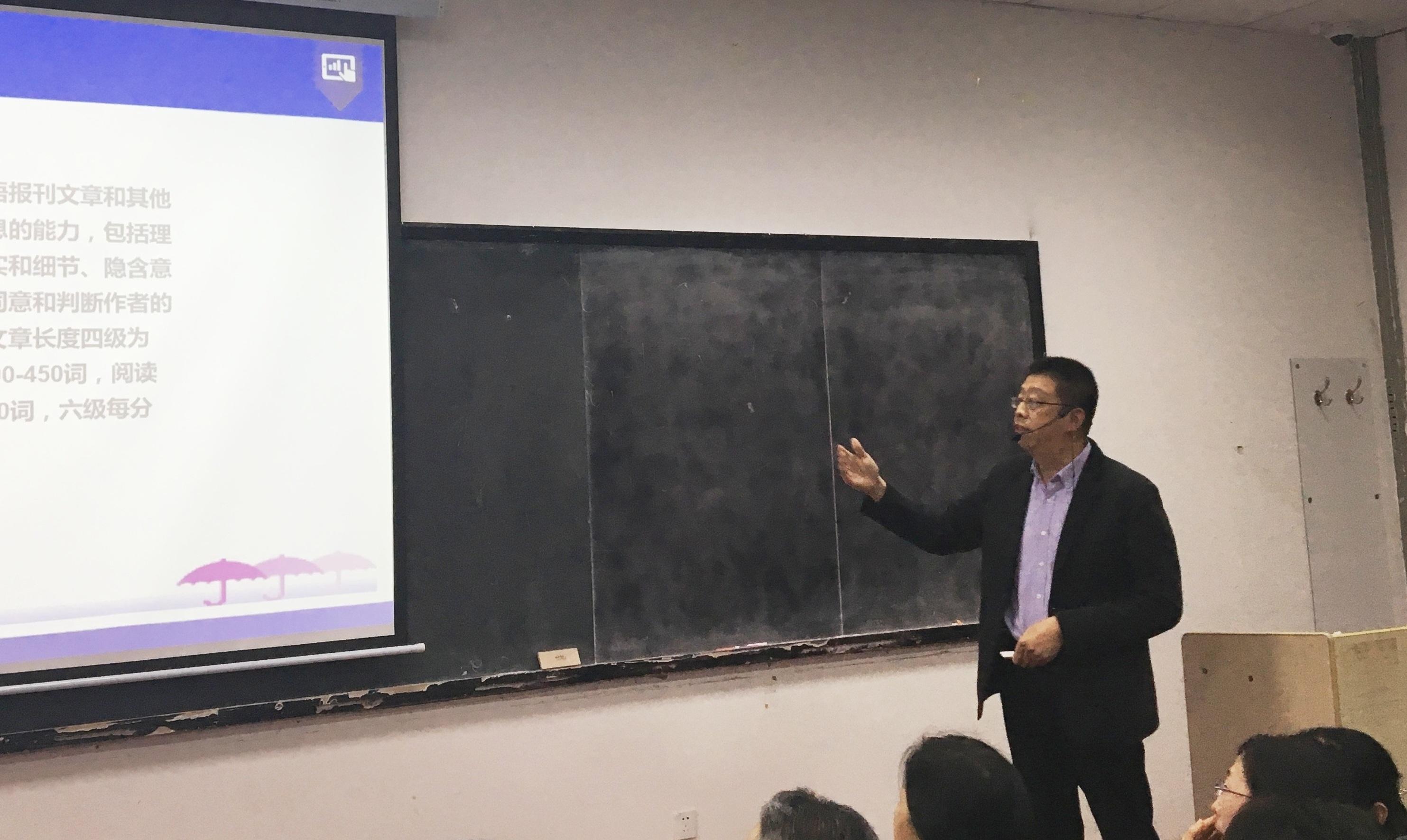 第一场讲座以大学英语学习导航为主题、专为欧乐影视