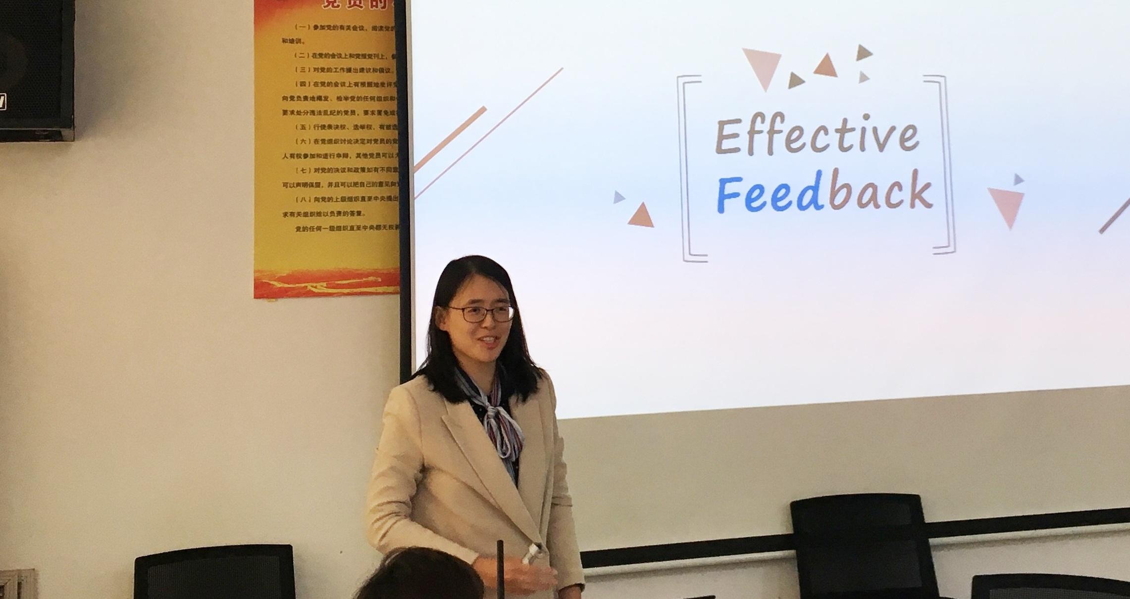 第四期教学经验分享会上,丁霞、张恬、唐丽伟三位老师分别以“翻转课堂与交互式教学模式的实践探索” “如何对学生汇报展示进行有效的教师反馈”,和“基于布鲁姆认知目标分类理论的英语文本细读”为主题,分享了自己的课堂经验和教学理念。田丽娟老师则分享了她在西交利物浦大学参加课改研修的收获,从宏观角度对目前大学的教育改革意义进行了解读,并对大学教师“以学为中心”开展教学提出了自己的见解。