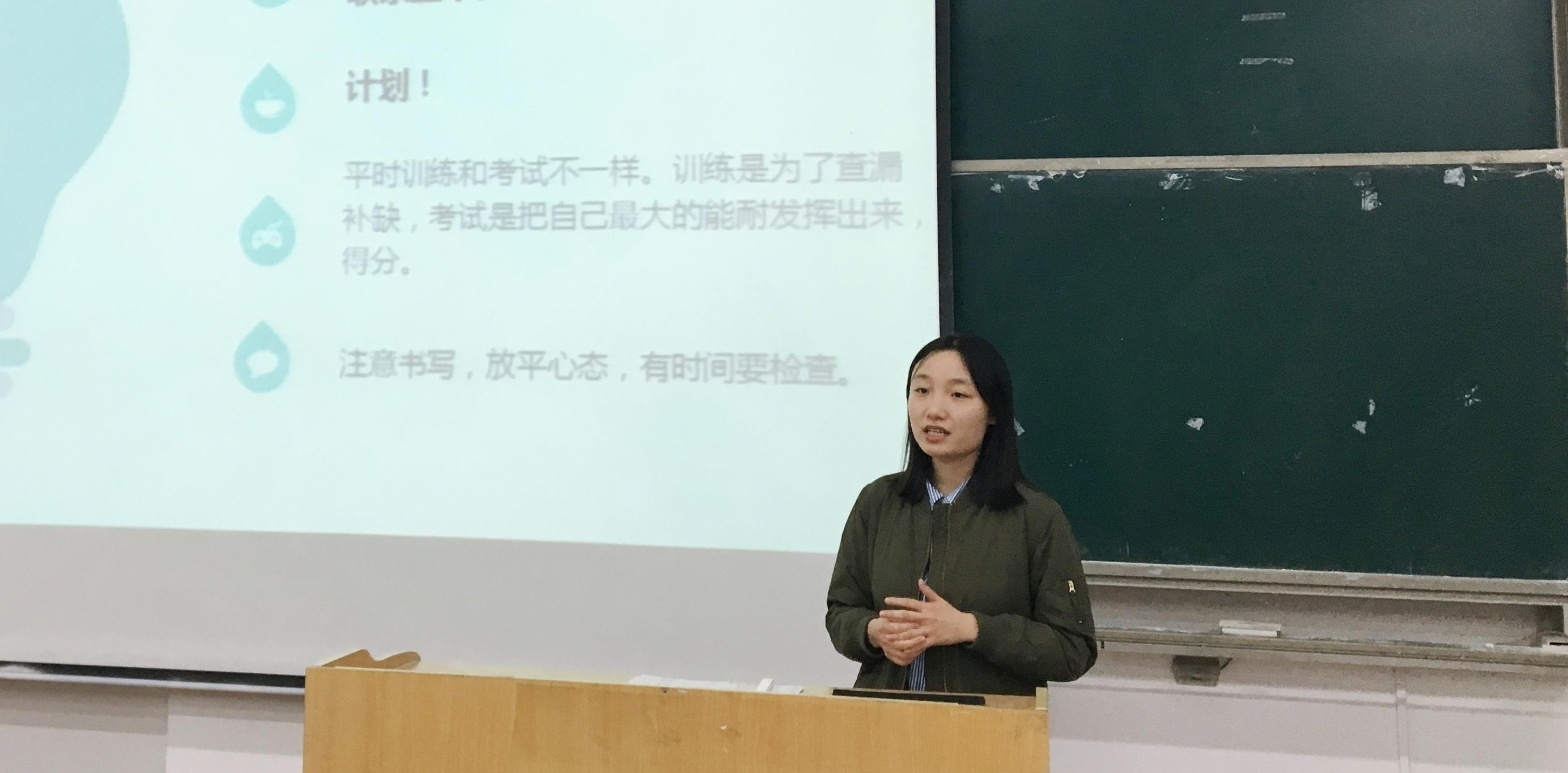 在第九周以四六级备考攻略为主题的讲座中,葛茜、佴云国和孙培星三位老师分别就四六级考试的写作、阅读、听力与翻译带来了备考指南。经济学院国际经济与贸易(中外合作)专业2016级万宇和旅游与地理学院地理科学专业2017级闫逸晨就各自英语竞赛的获奖经历和四六级考试的准备经验进行了分享,她们都强调了日常学习与积累的重要性。万宇表示:“分数固然重要,但是更重要的是在准备的过程中所收获的自律、坚持等这些远比好的分数更让人受益的东西。”