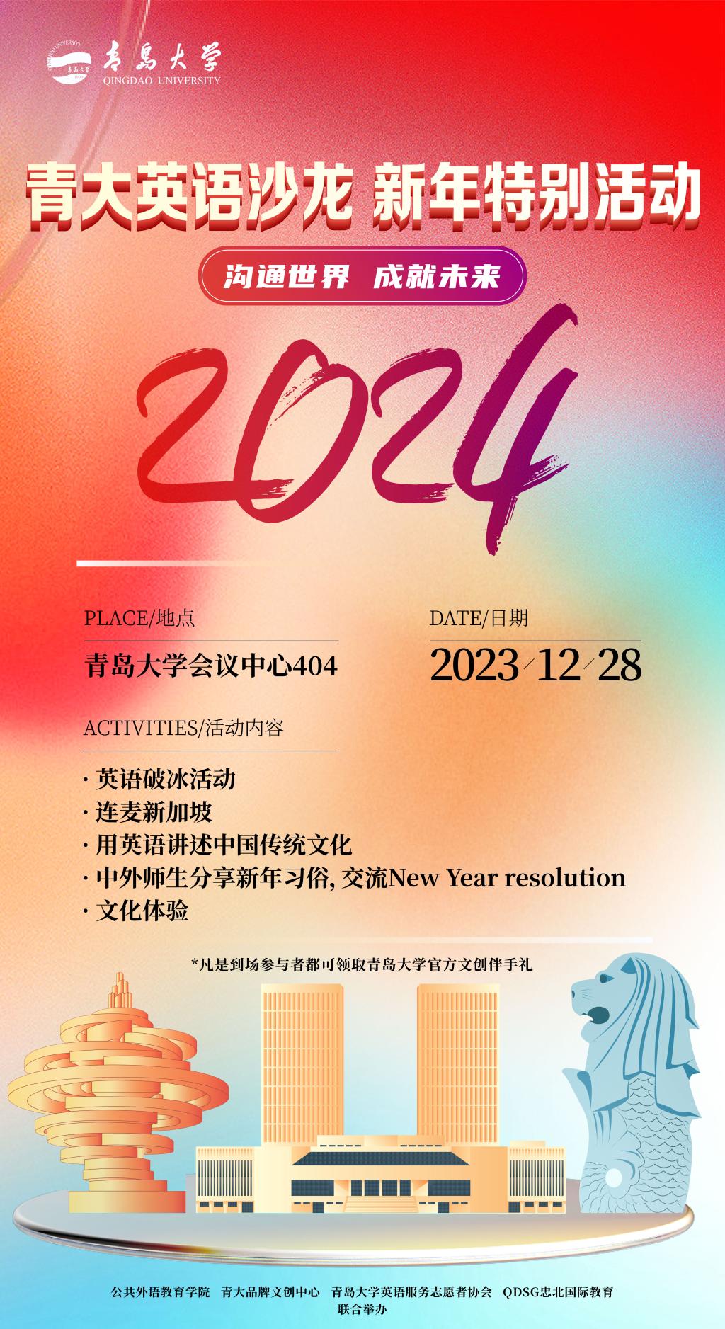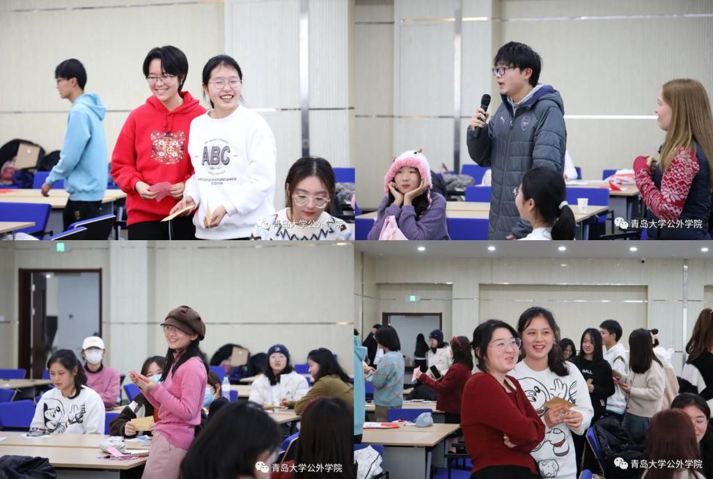 12月28日下午2点,欧乐影视 、欧乐影视 英语服务志愿者协会与QDSG忠北国际教育、青大品牌文创中心,在会议中心404室举办了一场青大英语沙龙活动:Happy New Year——中外师生喜迎新年。欧乐影视 院长国林祥、副院长王海峻、欧乐影视 教育培训中心主任韩继雨以及中外教师和学生百余人参加。