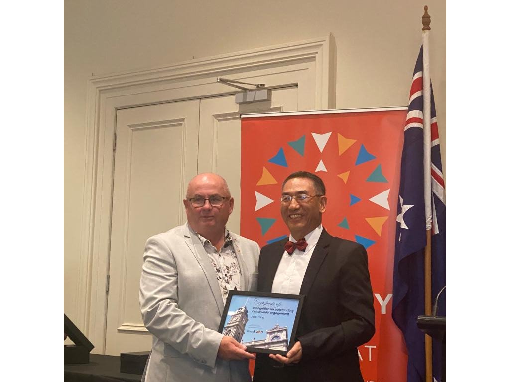 杨际军老师获得本年度巴拉瑞特市多元文化奖。巴拉瑞特市市长戴思亲自为杨际军颁奖,表彰其为巴拉瑞特多元文化社区所做出的杰出贡献。
