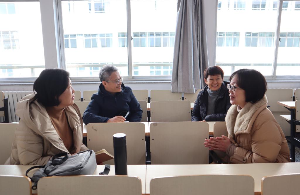 院长国林祥与副院长王海峻、印玲推门听课,检查开学教学秩序,开展调研。