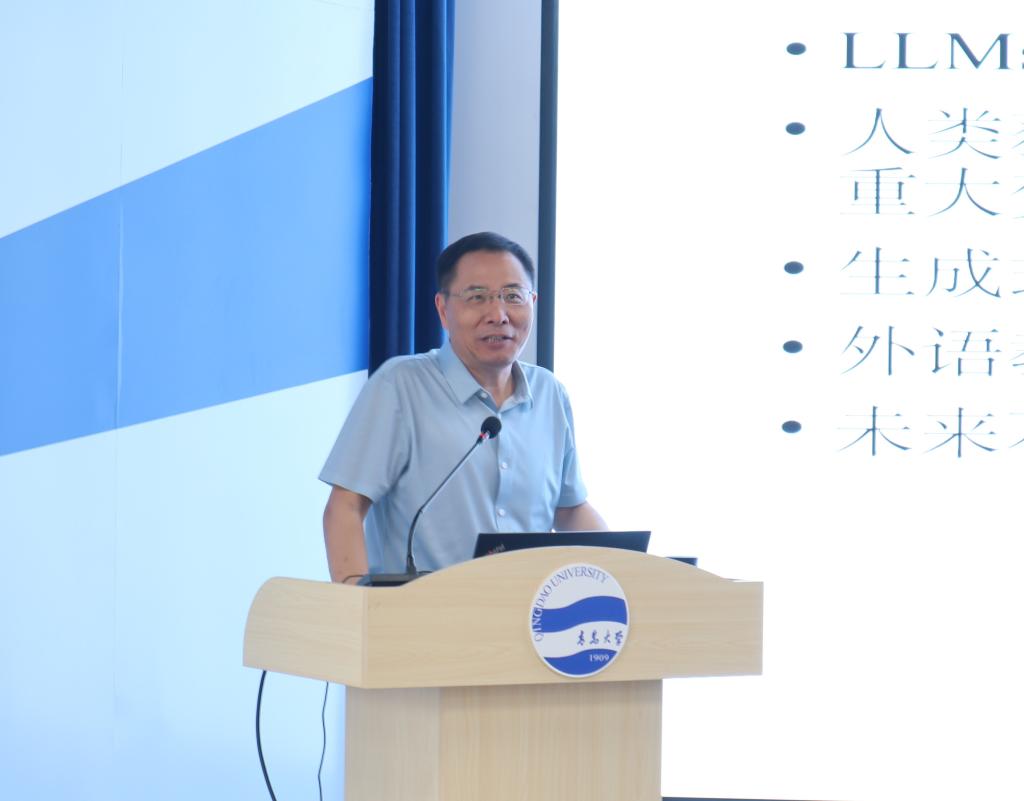 7月11日,山东省重点学科“外国语言学及应用语言学”首席专家、山东省强化建设重点学科“语料库语言学与翻译研究”研究方向带头人、曲阜师范大学外国语学院秦洪武教授在欧乐影视 浮山校区大学生科创文化中心二楼青年大讲堂作了题为“生成式人工智能在大学英语教学中的应用与研究”的专题讲座。讲座由欧乐影视 院长国林祥主持。欧乐影视 副院长王海峻、印玲、欧乐影视 及外语学院近百位教师聆听了讲座。