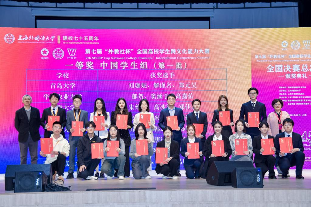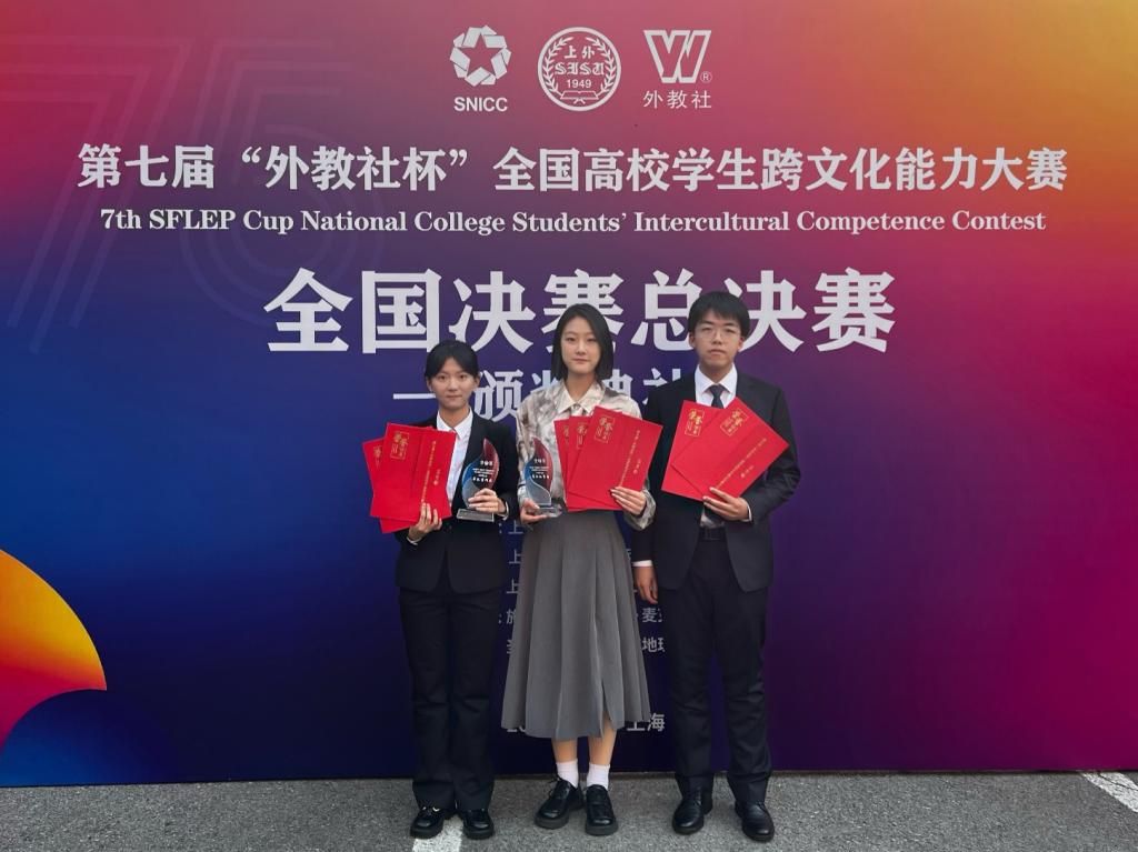 参赛团队展示了在跨文化理论知识与实践、国际视野、思辨能力、英语语言应用能力、演讲与沟通技巧等多方面的综合实力,获得了大赛评委的高度认可,总决赛成绩名列全国第四,荣获全国一等奖,取得“外教社杯”全国高校学生跨文化能力大赛成绩的又一次重大突破。