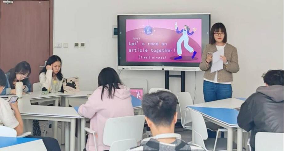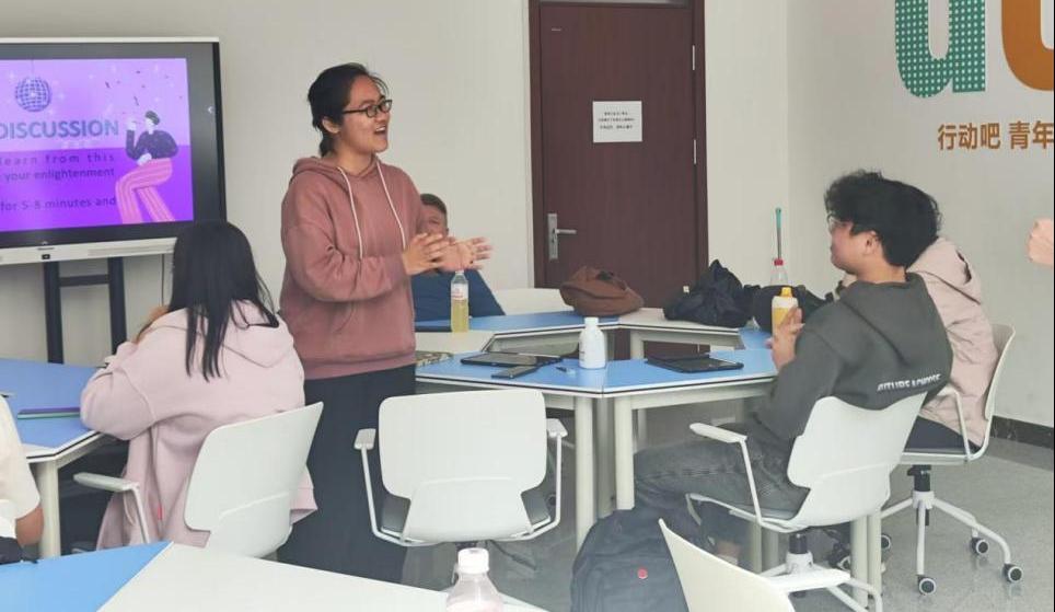 本次沙龙由王雅萱同学担任主持。主持人首先带领同学们共读了《中国日报》(China Daily)推荐的六种健康运动的文章,之后同学们积极分享了自己从“运动小白”变成健身爱好者的过程,讲述了通过舞蹈、拳击等多样化运动方式实现身心健康的故事,现场气氛热烈。