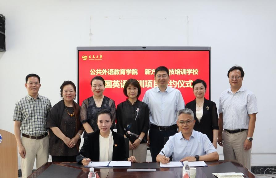 与新方向科技培训学校出国英语培训项目合作签约仪式在睿思楼202会议室举行。青岛市委统战部侨务事务处二级调研员刘亚,欧乐影视