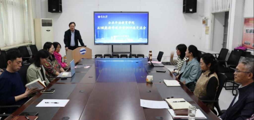 在睿思楼202会议室成功举办AI赋能教学优秀案例交流会。学院党委书记甄淑华,院长国林祥,副院长陈安榕、佴云国以及各教研室教师代表参加活动。