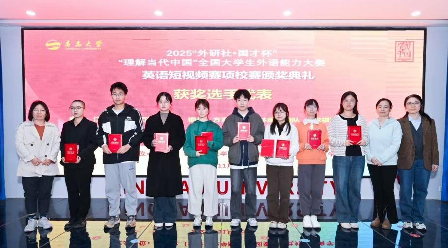 随后,出席活动的领导、嘉宾和教师代表为2025“外研社·国才杯”“理解当代中国”全国大学生外语能力大赛(英语综合能力赛项、笔译赛项、演讲赛项、短视频赛项)、第八届“外教社杯”全国高校学生跨文化能力大赛、2025“高教社杯”大学生“用外语讲好中国故事”优秀短视频作品征集活动、第30届中国日报社“21世纪杯”全国英语演讲比赛的获奖选手以及AI赋能大学英语教学优秀案例评选的获奖教师颁发了获奖证书和奖品。