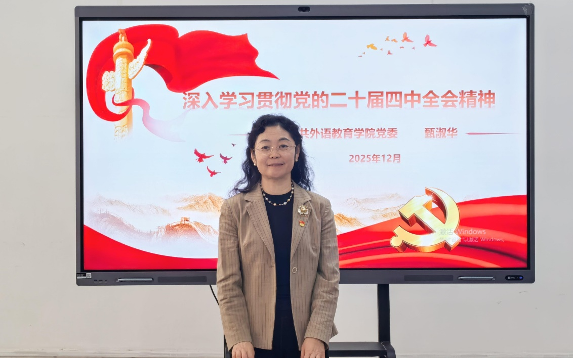 在睿思楼202会议室召开全体教职工政治理论学习会,院党委书记甄淑华就党的二十届四中全会精神作了宣讲。
