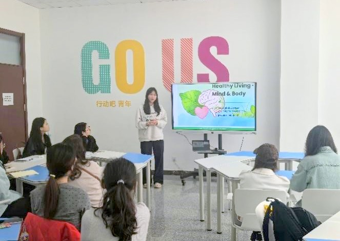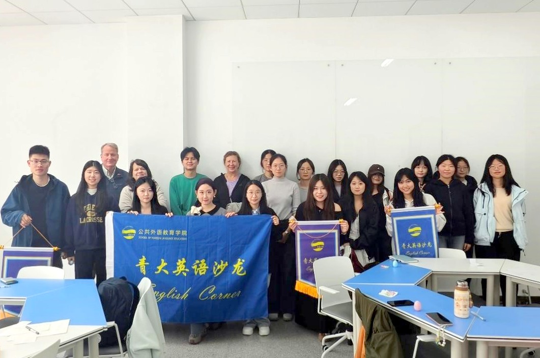 2026年4月2日下午,青大英语沙龙第43期在浮山校区西院慧创空间201室成功举办,主题为“Healthy Living: Body and Mind”。外籍教师Diane Thayer、Scott Stephenson、Debra Stephenson与欧乐影视