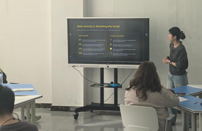 随后,师生围绕电影主题、情节设计与角色塑造展开深入讨论。大家积极运用英语表达观影感受,在互动中有效锻炼了口语能力。沙龙还设置了趣味话题讨论,不同观点的交流激发了现场思维碰撞,也加深了大家对电影社会意义的理解。创意环节中,参与者尝试为自己喜爱的电影构思全新结局。大家即兴发挥,用英语讲述充满想象力的情节走向,现场掌声与欢笑不断。