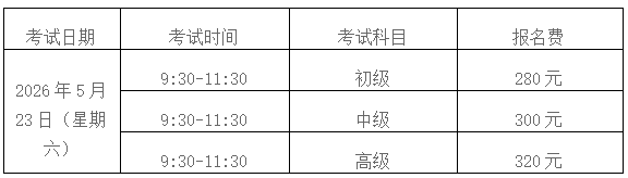 考试分为初级、中级和高级三个等级,每个等级满分均为300分,均以180分为及格标准。