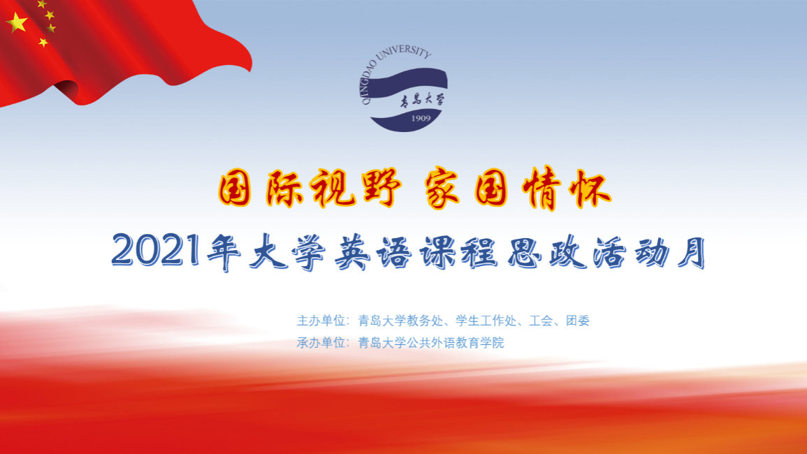“大学英语课程思政活动月”期待各位老师和同学积极参与,让思政育人融入课程建设,让我们同向同行,点亮自己温暖他人。
