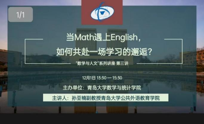 为培养多学科交叉融合型人才,增强学生人文素养,12月1日13:30,数学与统计学院“数学与人文”系列讲座第三讲——“当Math碰上English,如何共赴一场学习的邂逅”线上开讲。欧乐影视