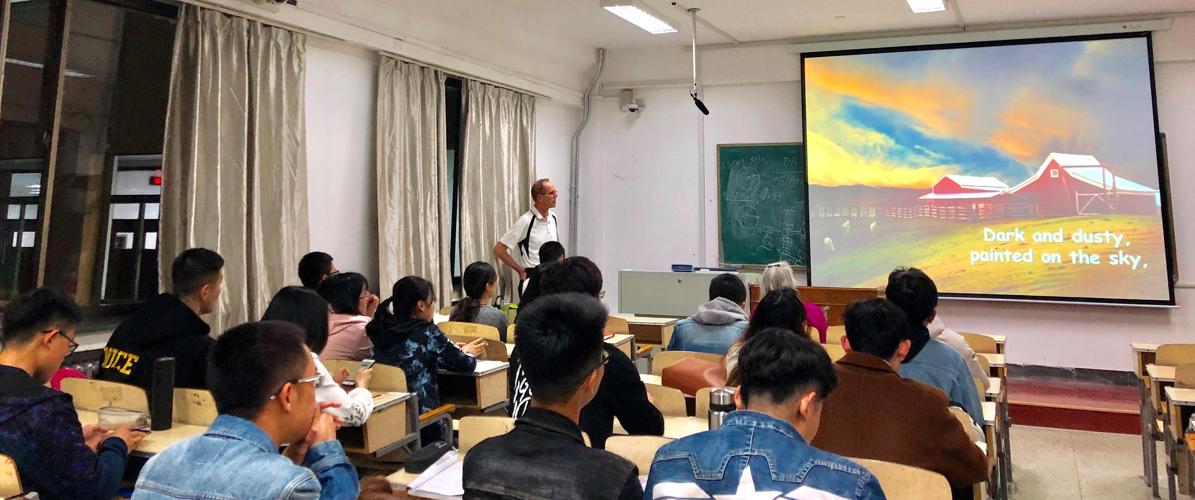 在本期活动中,Sterling Larsen和Carol Larsen老师为同学们介绍了美国大学生的宿舍生活和美国的乡村生活文化。同学们用纸、笔设计理想中的宿舍,热烈交流着对温馨舒适的宿舍环境、和谐美好的宿舍文化的向往。活动在积极而又热烈的师生互动交流中圆满结束。