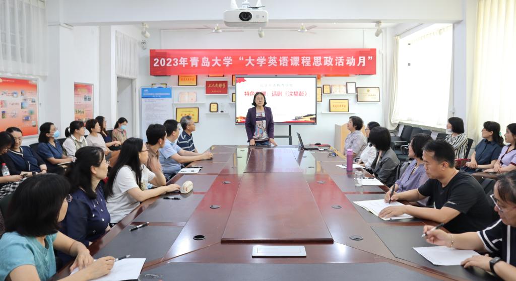 全体教职工在睿思楼202会议室上了一堂特色党课,文学与新闻传播学院党委副书记戚昕讲述红色话剧《沈福彭》的创作与展演过程,集体观看了话剧录像。院党委书记刘海荣主持会议。