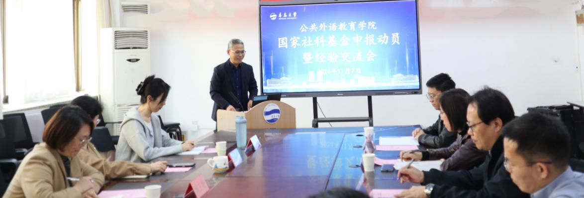 在睿思楼202会议室召开国家社科基金申报动员暨经验交流会。人文社科处副处长刘玉魏、刘晖莅临指导。院长国林祥主持会议,院党委书记甄淑华、副院长陈安榕、佴云国、学院副教授、博士及在读博士参加会议。