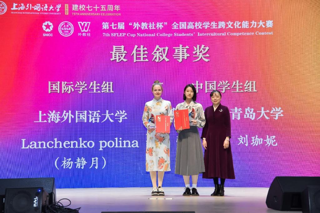 11月29日至12月1日,第七届“外教社杯”全国高校学生跨文化能力大赛全国总决赛在上海外国语大学举行。由我校外语学院刘珈妮、青岛医学院解谨名和外语学院郑元昊组成的青岛大学团队获得全国总决赛中国学生组一等奖、最佳案例奖,外语学院刘珈妮获得最佳叙事奖。公共外语教育学院教师秦丹雪、蒋功艳和外语学院教师吕凯良获得全国总决赛指导教师一等奖。青岛大学获得优秀组织奖。