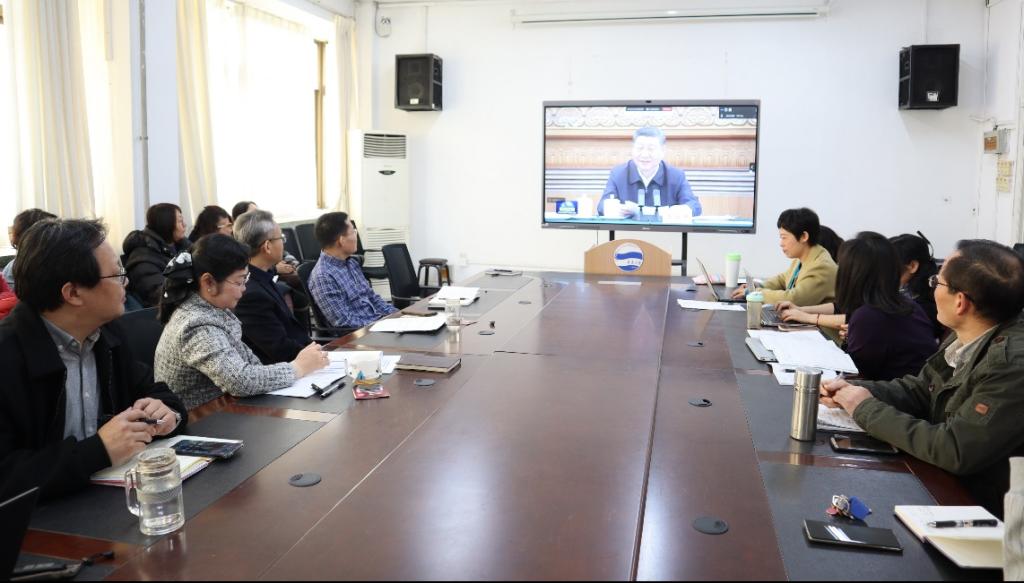在睿思楼202会议室召开春季学期期初工作会议暨教职工政治理论学习会,院长国林祥主持会议,院党委书记甄淑华,副院长陈安榕、佴云国及全体教师参会。