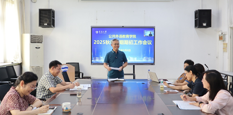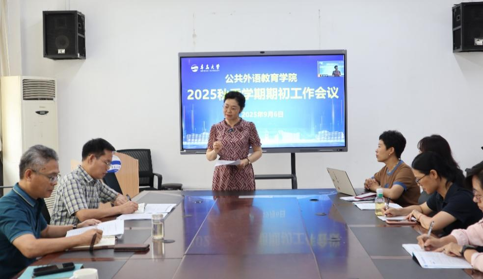 教师暑期以来的主要工作,指出暑期以来,学院教师积极参与,认真完成了研修、规培研究生教学、德雷克联合学院教学研讨、英语赛事组织指导、排课等各项重点工作。他对新学期进行了部署,要求各教研室、各教学团队认真做好备课研讨、开课、缓补考等各项期初工作。在新的学期,学院要继续开展“大学英语活动月”系列活动,组织开展各项高水平英语竞赛,优化大学英语课程设置,积极推进AI赋能大学教学改革,大力开展社会服务工作,高质量完成欧乐影视