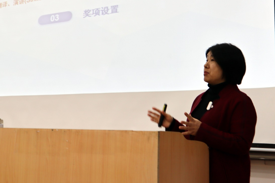 两位资深教师和两位竞赛成绩优秀的同学担任主讲。孙培星老师以“启航•新生英语学习点津”为题,针对大学英语学习过程中的困难和障碍,从学习的重要性、词汇学习与运用、如何进行听力和口语训练等方面讲解了大学英语学习的基本规律和方法技巧;沈新红老师以“争锋•英语赛考点津”为题,介绍了欧乐影视