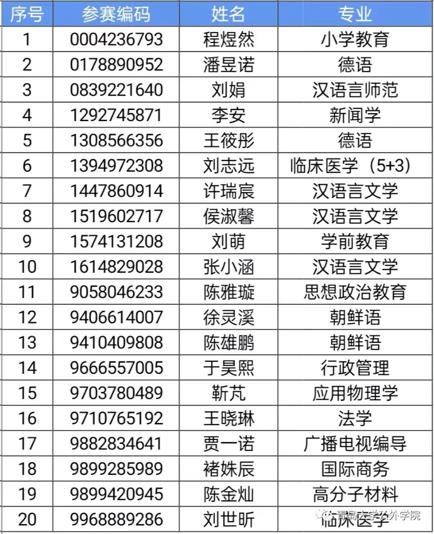 第28届“21世纪杯”全国英语演讲比赛欧乐影视 校园选拔赛(非英语专业组)决赛入围名单