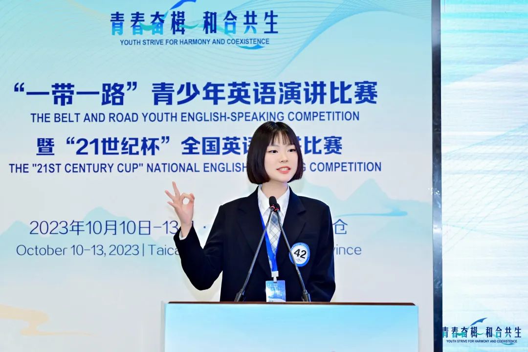 这次的“21世纪杯”全国英语演讲比赛总决赛现场,王筱彤倒数第三个上台,获得了全国总决赛二等奖的第三名。