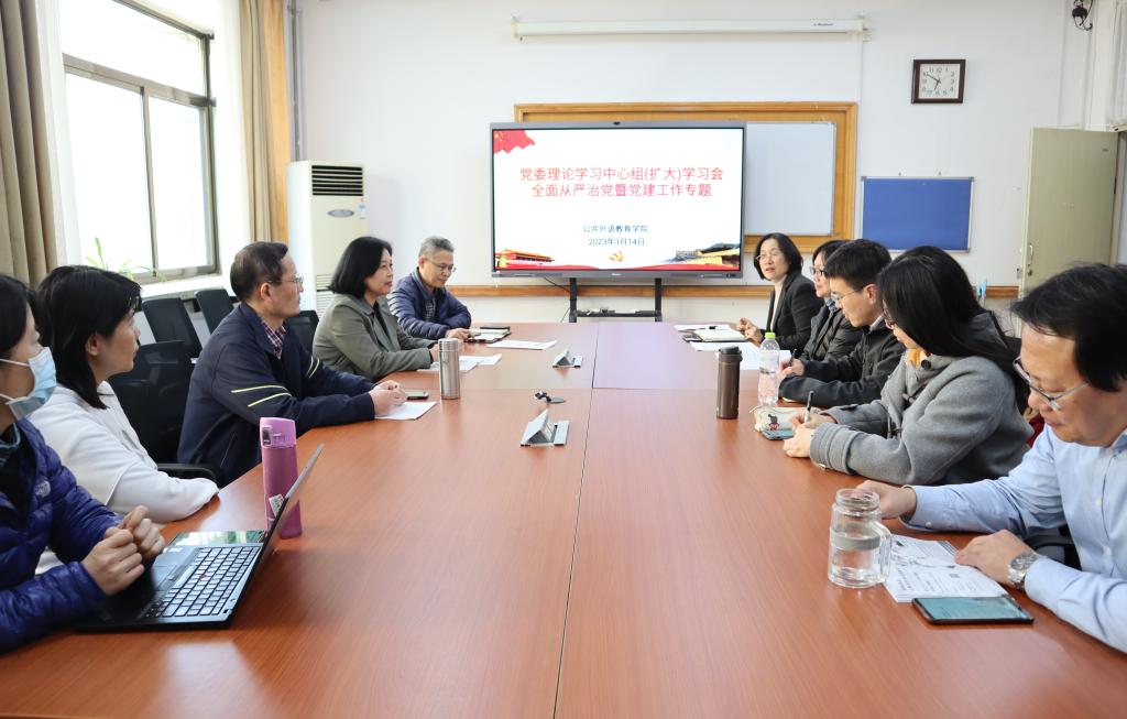 2023年全面从严治党暨党建工作会议精神。学院党政领导、党委委员、党支部书记、教研室主任、教学团队负责人参加,学院党委书记刘海荣主持学习会。