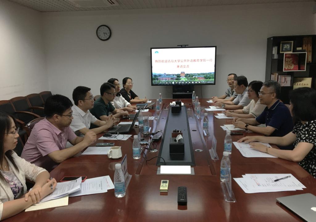 中山大学外国语学院外语教学中心主任陈静、副主任廖益清、郑岩芳详细交流了该校在大学英语和研究生公共英语阶段开设的学术英语课程设置、面授为主、分层教学、教材选用、测试评估、教师发展等方面的理念和做法。