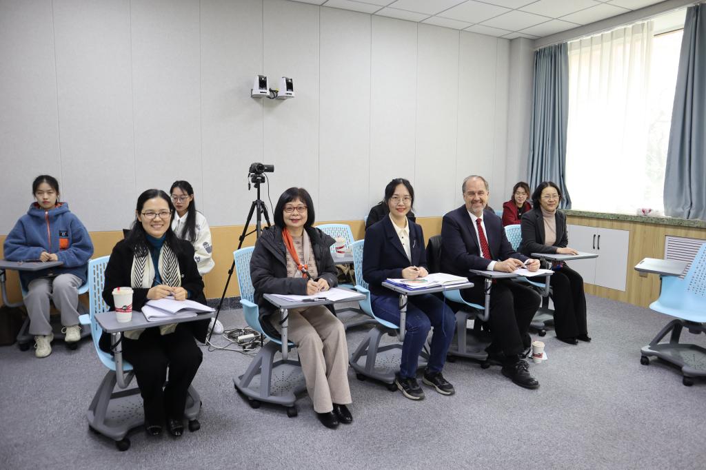 王珍瑛、孙亚楠、Ivan Franck三位老师担任裁判,第24届“外研社·国才杯”全国大学生英语辩论赛全国总决赛一等奖得主武佳文、史可心二位同学参与裁判工作。所有参赛辩手表现出良好的语言素养、活跃的思辨状态、缜密的逻辑能力,充分展示出青大学子心怀家国、志存高远的昂扬状态。
